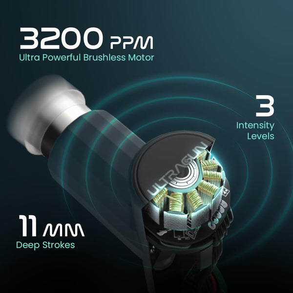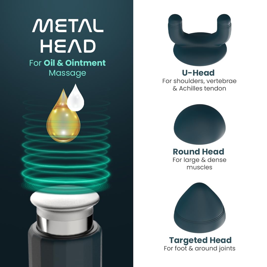 UltraCare PRO Ultragun PRO Massage Gun With Metal Head For Oil Massage & 3 Soft Silicone Heads, Ultra-Compact & Lightweight, Heatless Performance, Premium Carrying Case, Black
