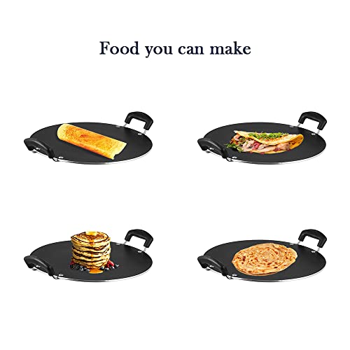 Vinod Zest Aluminium Non Stick Pathri Tawa - 31.5 cm | 5mm Thick | 3 Layer Coating | Metal Spoon Friendly | Bakelite Handle | Gas Base | 1 Year Warranty