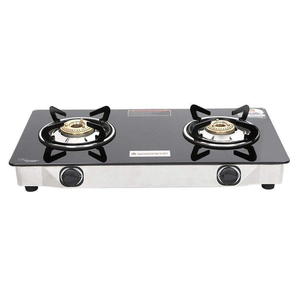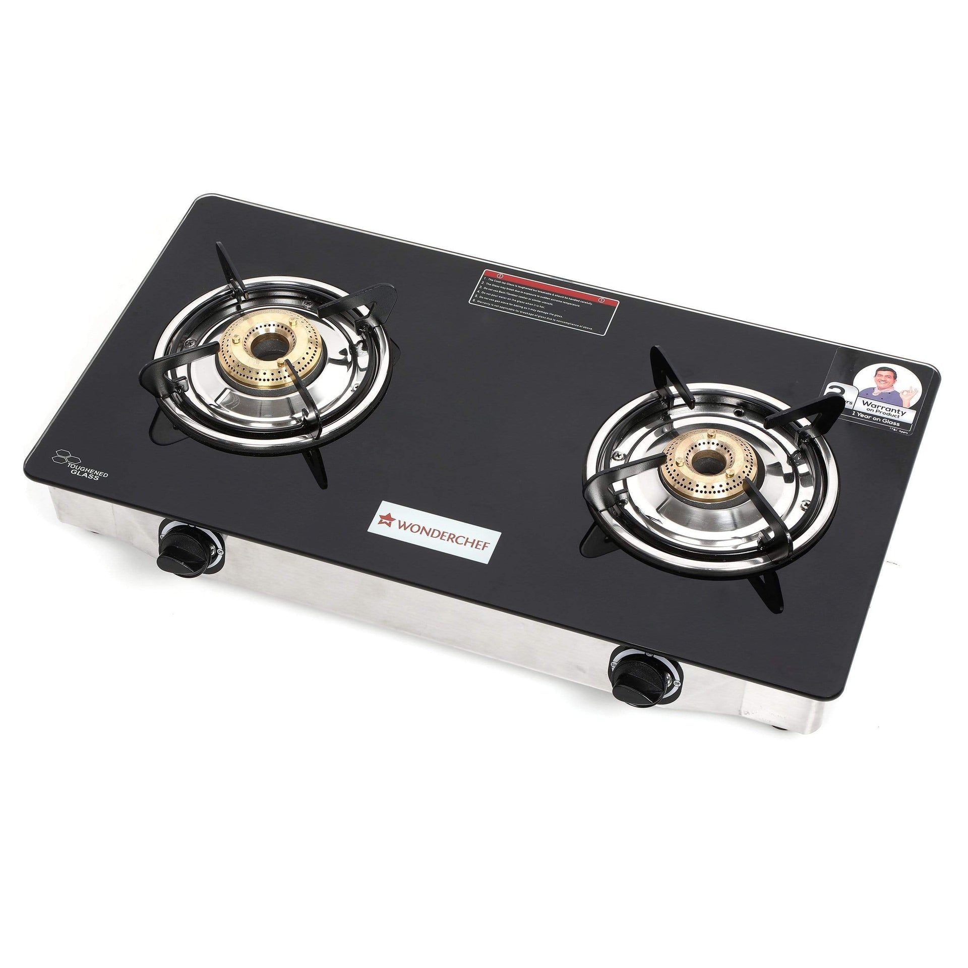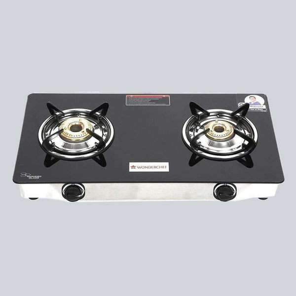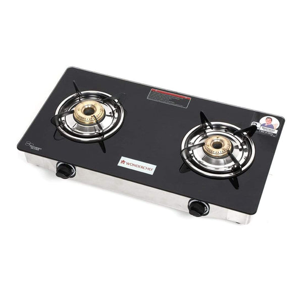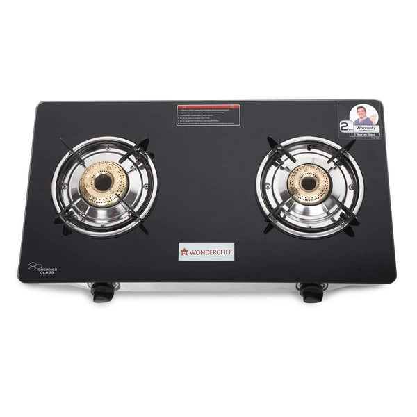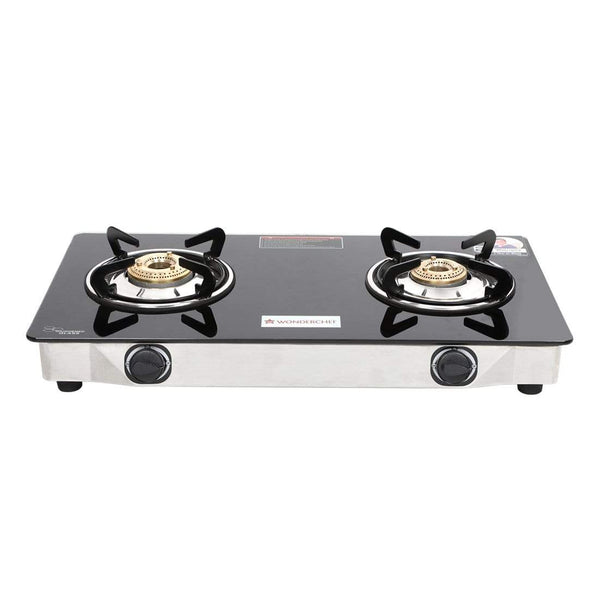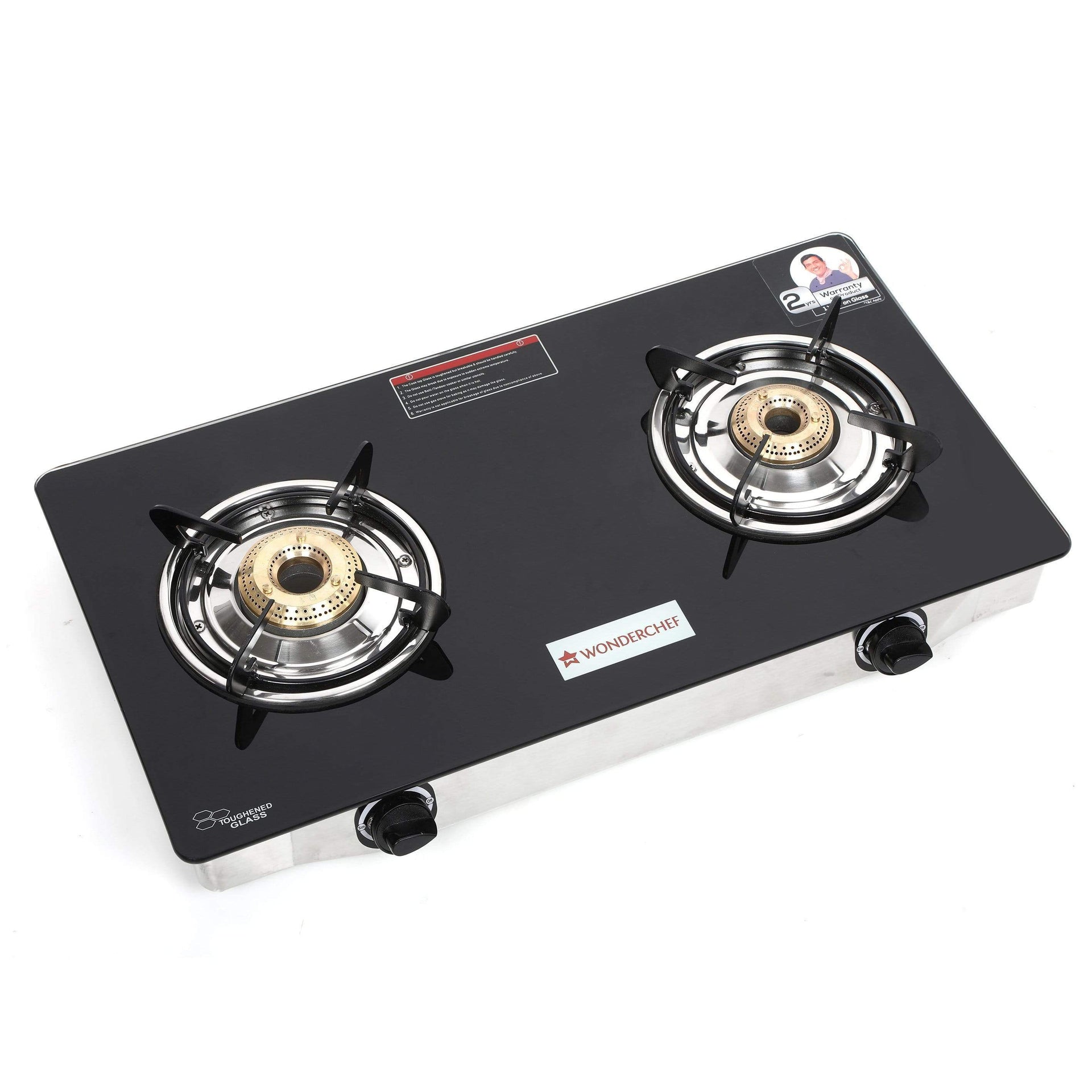 Zest 2 Burner Glass Cooktop, Black 7mm Toughened Glass with 1 Year Warranty, Ergonomic Knobs, Efficient Brass Burners, Stainless-steel Spill Tray, Manual Ignition